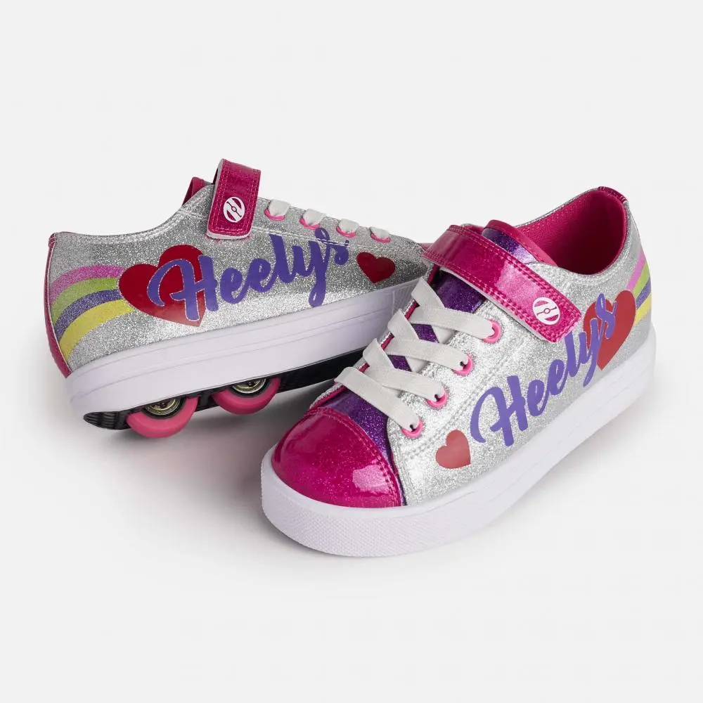Heelys X2 Snazzy Shoes with Wheels for kids | Silver Rainbow