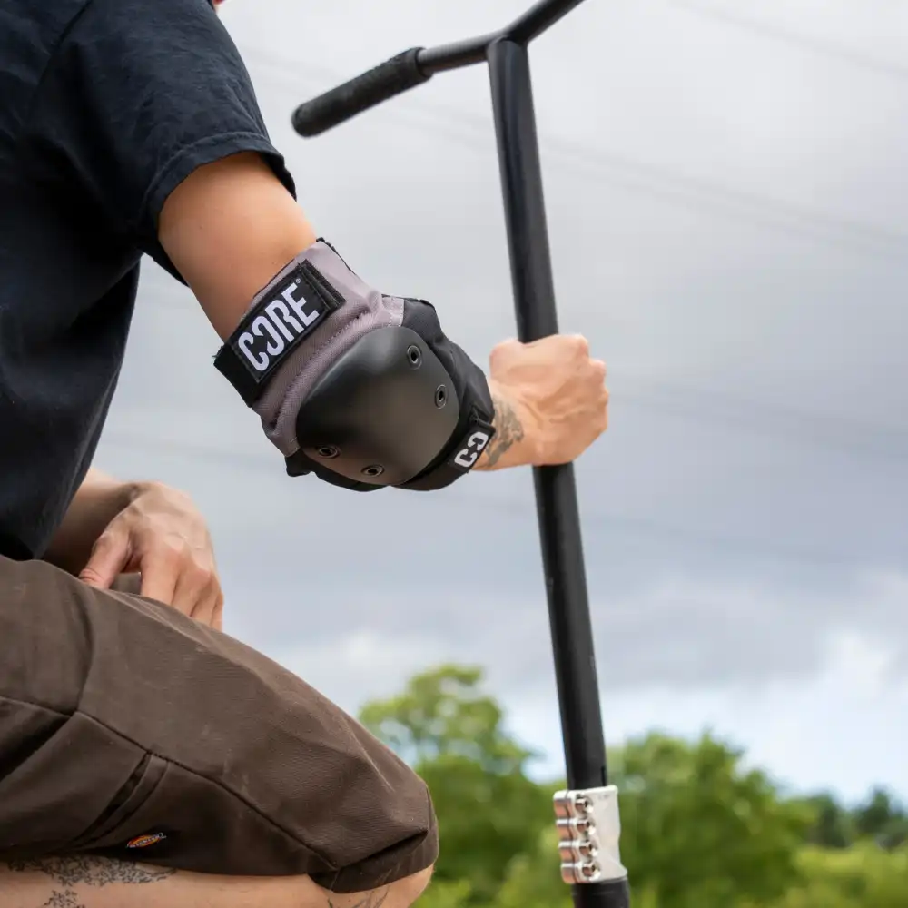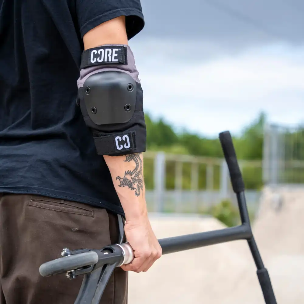 Ochraniacze na łokcie CORE Pro to solidna ochrona do skateparku, streetu i codziennej jazdy na hulajnodze, deskorolce i BMX.