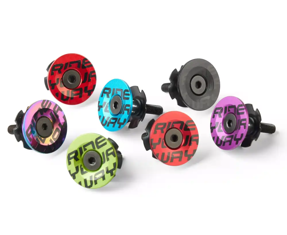 Lekki Top Cap / kapsel i gwiazdka Dartmoor do sterów w specjalnie zaprojektowanym kształcie z logo Ride Your Way.