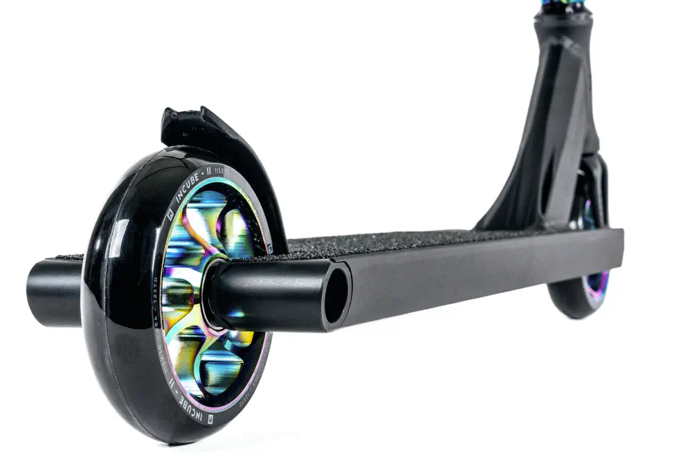 Mocny zacisk Ethic Valkyria na dwie śruby typu bolt łączy wszystko w całość.  Zaciski Ethic słyną z trwałych i niezawodnych połączeń. Będąc na wyższym stopniu zaawansowania więcej wymagasz od hulajnogi, bo robisz bardziej rozbudowane triki. Tu masz wszystko, czego potrzebujesz.