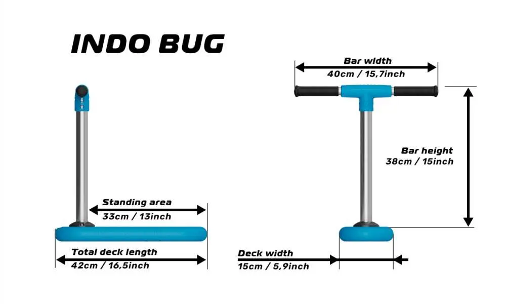 Hulajnoga treningowa INDO Bug jest przeznaczony dla małych dzieci (3 do 6 lat). Chcieliśmy dać szansę wszystkim w tym młodszym aby zabrali się za trenowanie trików na hulajnodze już w domu lub na trampolinie. Wysokiej jakości zabawka dla najmniejszych dzieci do ćwiczenia motoryki, równowagi i pierwszych trików na hulajnodze.