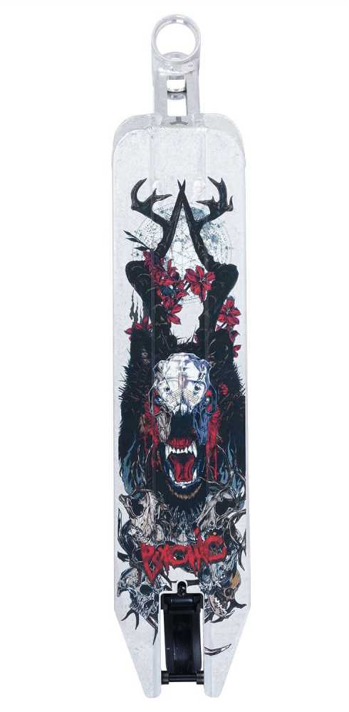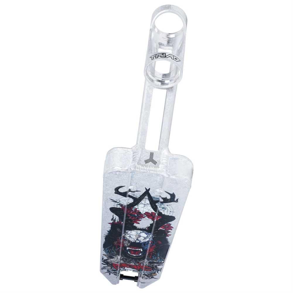 Nasz nowy deck Triad Psychic Totem został zaprojektowany na podstawie naszego oryginalnego podestu Medusa, ale został znacznie udoskonalony aby zmniejszyć wagę i poprawić funkcjonalność. Wyposażony w nowy układ hamulcowy V2 Fend Off, lekką, ale mocną szyjkę i główkę ramy. Dostępny w wyjątkowej kolorystyce surowego kamienia. Z systemem mini gridlock, przezroczystym odlewanym griptapem i niesamowitą grafiką Psychic Totem otrzymujesz jeden z najlepszych podestów na rynku.
